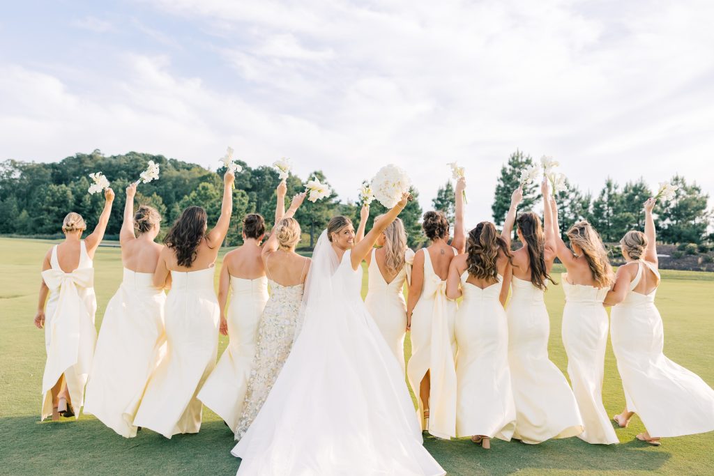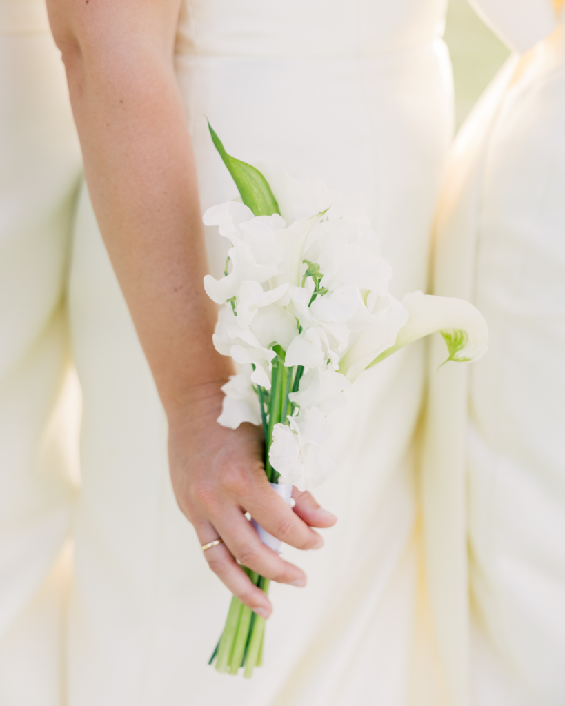 The bridesmaids brought in one of the freshest moments of the day. Butter yellow dresses, all in different silhouettes, added movement and variation, paired with crisp white calla lilies that kept everything clean and modern.
