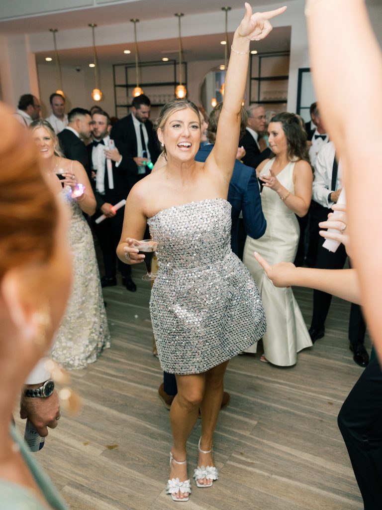 Later in the night, that energy carried straight onto the dance floor with a full outfit change into a rhinestone-covered mini dress that caught the light from every angle. A complete shift in mood and exactly the kind of moment that resets the room.