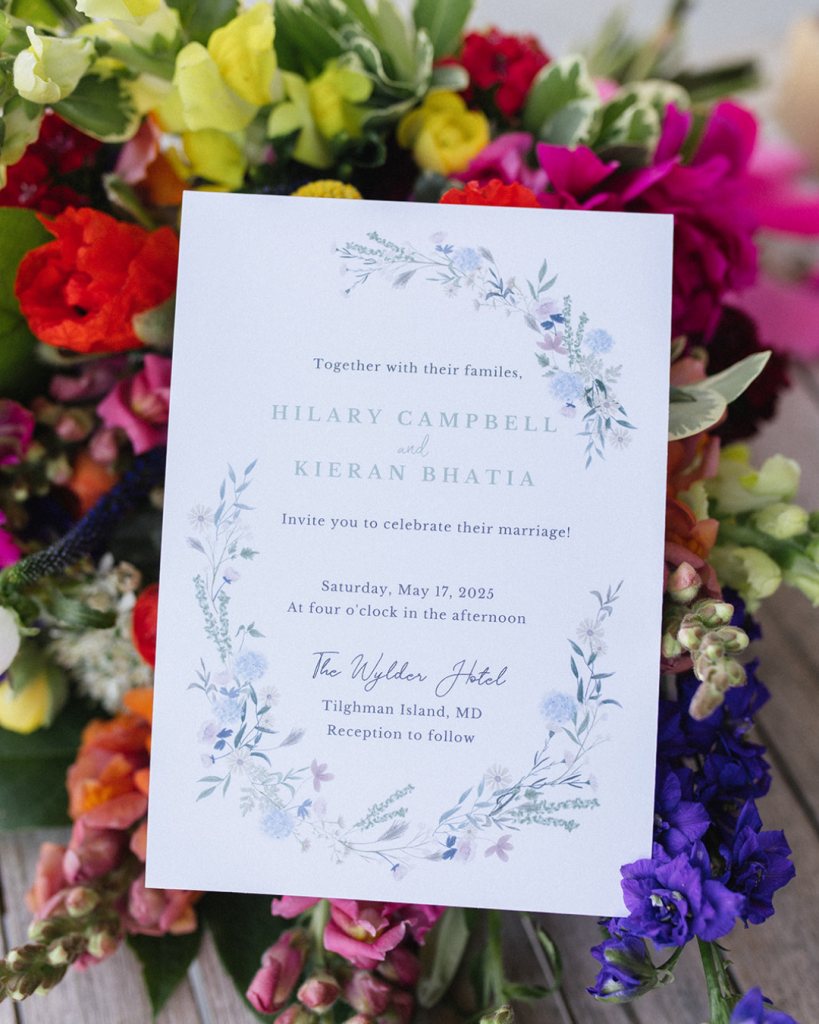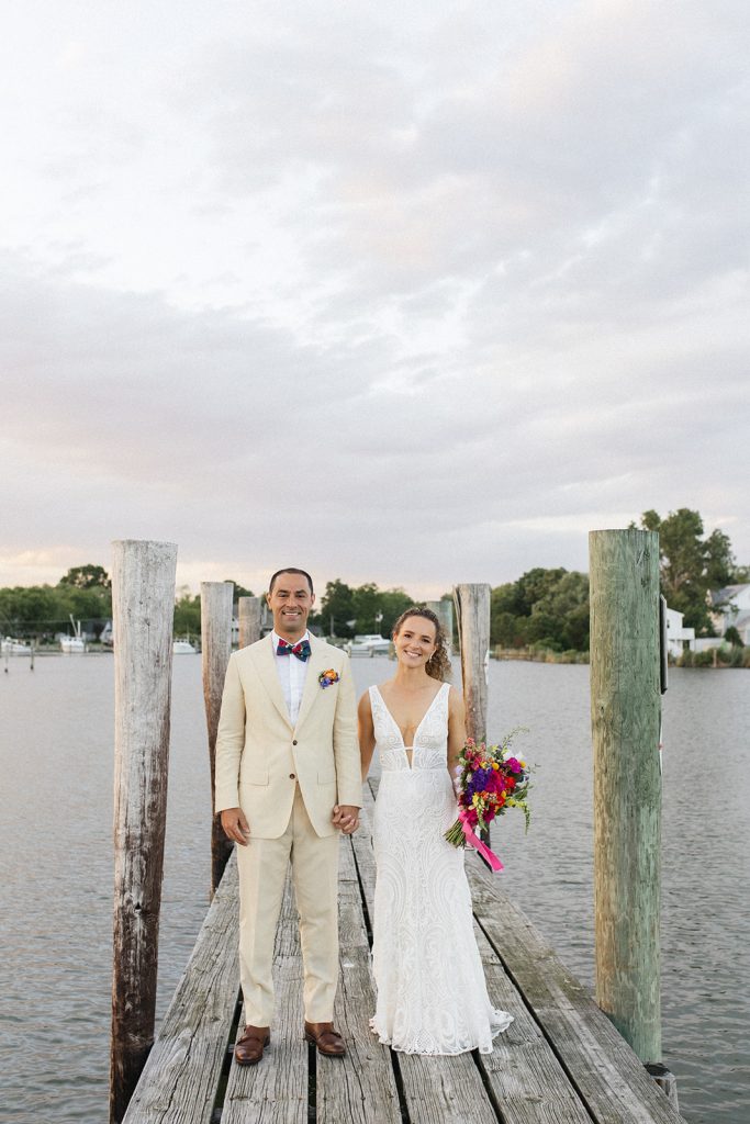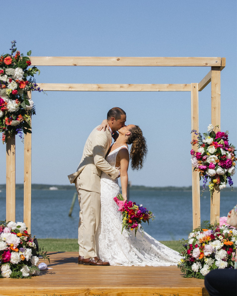 Water just beyond the ceremony. Quiet surrounds. That slower, coastal pace the Eastern Shore is known for. Hilary and Kieran lit up the shore with soft romance and a bold palette.