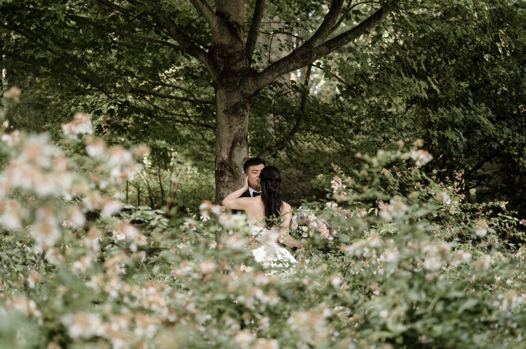 Surrounded by lush gardens, historic glass windows, and the sweetest group of friends, Jennifer & Pingfan celebrated a love as timeless as the setting. From a perfectly tailored tux to soft lavender gowns and cascading florals, every detail was pure magic.