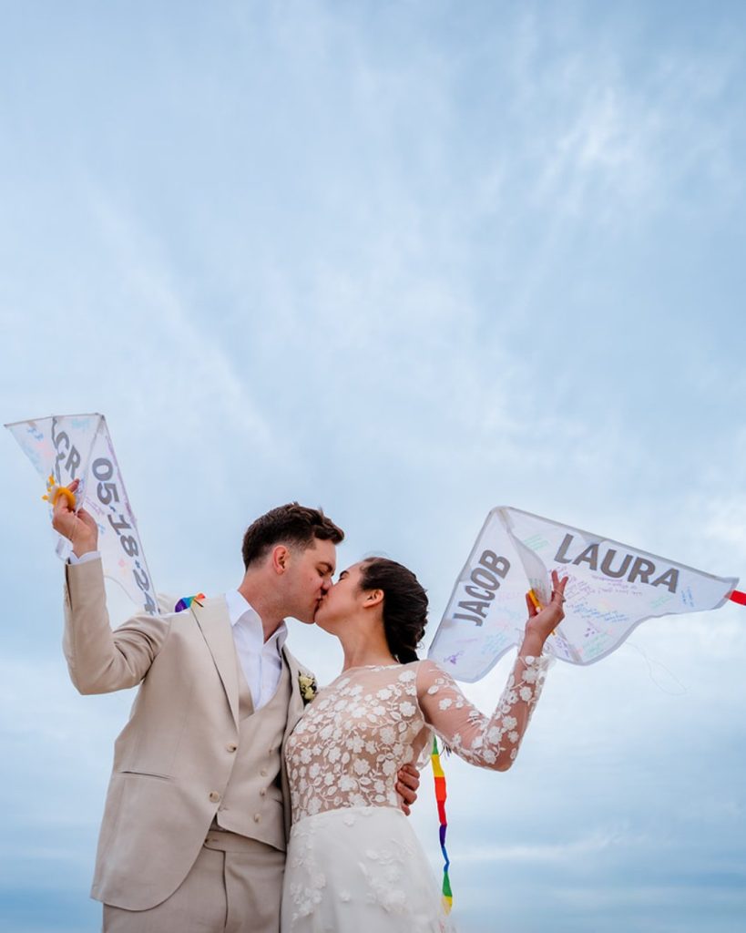 They exchanged vows beneath an open sky. They ran barefoot through the sand, laughing as the wind caught and lifted their custom kites. Just the two of them, the wind, and a wide stretch of shoreline.