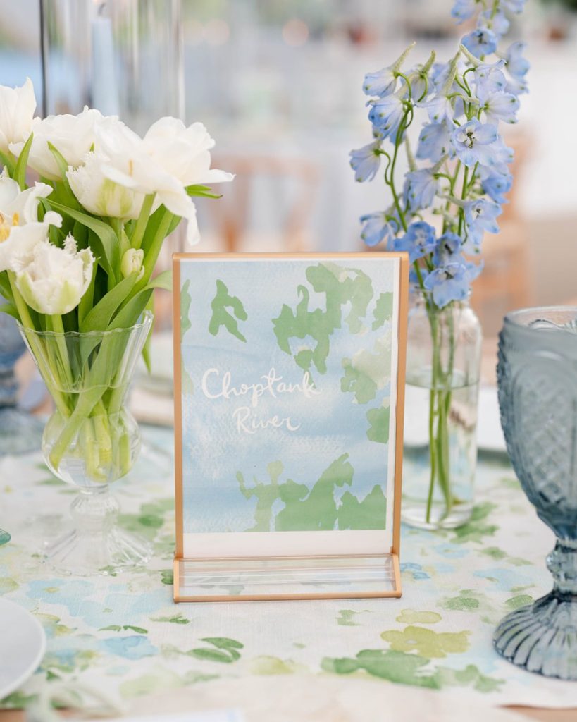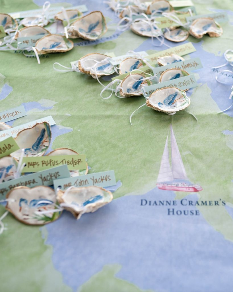 Personal touches tied everything back to place. Custom watercolor paper goods referenced local waterways, and hand-painted oyster shell escort cards offered a subtle nod to the Shore’s heritage — elevated, intentional, and unmistakably local.