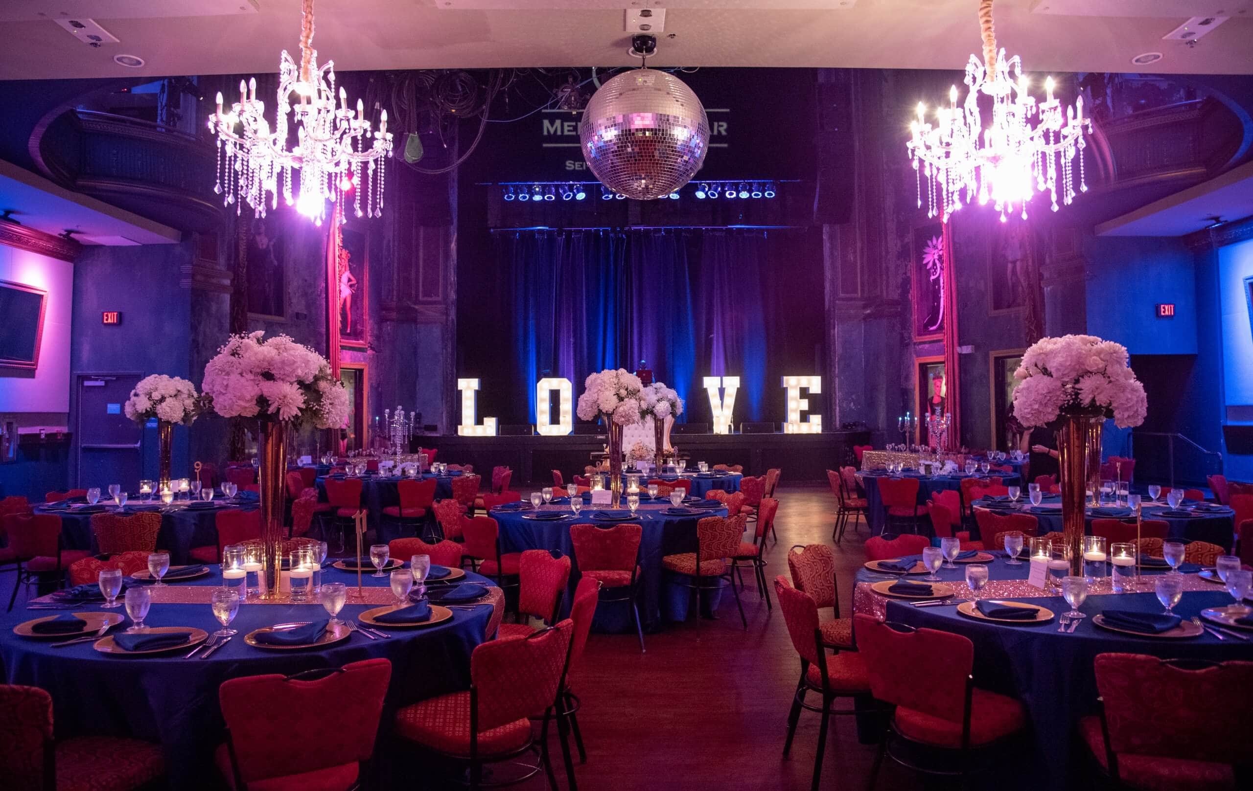 As Wilmington’s most celebrated live music venue, The Queen features multiple extravagant rooms that fit any event. The Main Hall is perfect for bigger events such as large weddings, corporate events, concerts, birthday parties, fundraisers and proms. Our medium-sized rooms, Olympia and The Crown, are a great fit for smaller weddings, company parties, conferences, bridal & baby showers and more. With access to our local partners, full-service event production, state-of-the-art lighting and sound, custom menus, and mixology—this unique 60,000 square-foot venue will exceed your expectations!