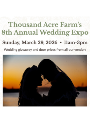 Discover wedding inspo and vendors galore at the Thousand Acre Farm Wedding Expo—your big day starts here! Thousand Acre Farm is proud to announce our annual Bridal Expo! The show will be held at the barn on March 29, 2026 from 11am-3pm. Our annual Bridal Expo is always a huge success! From our vendors feedback, it's one of the best bridal shows the...