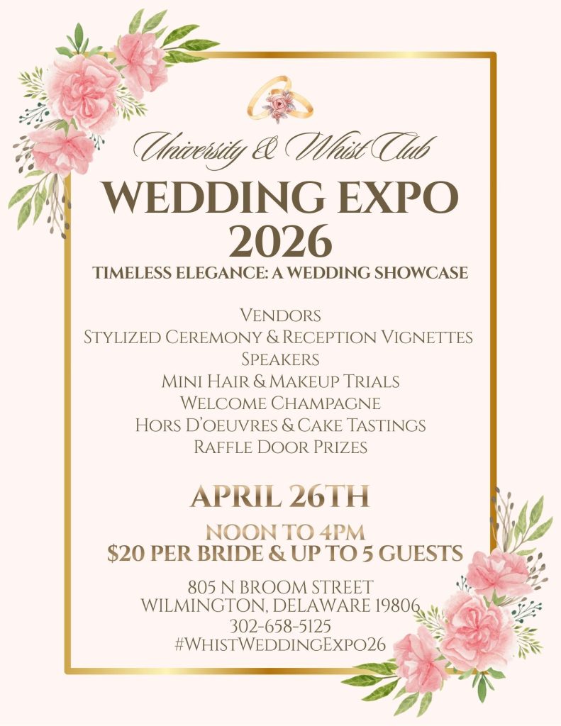 Timeless Elegance: A Wedding Showcase with the University & Whist Club Sunday April 26th • 12–4 PM Step inside the historic Tilton Mansion and The Carriage House for an unforgettable afternoon designed to inspire every detail of your big day. For just $20, brides can bring up to five guests to explore two stunning venues, sip a welcome champagne,...